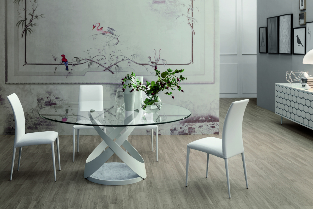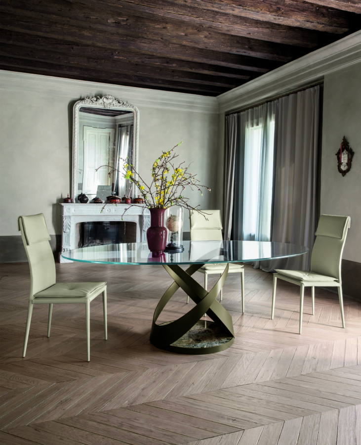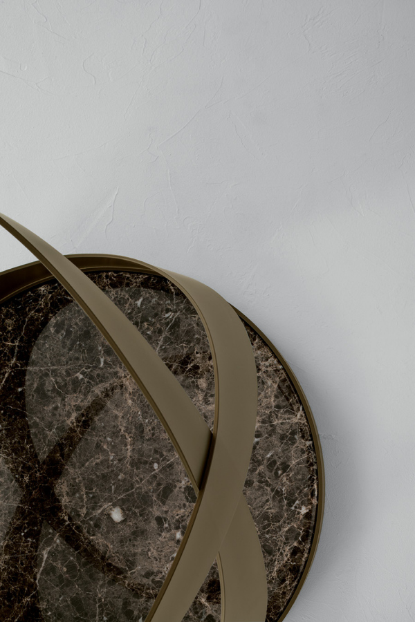 Dominantní síla podnože z lakované oceli se spájí s nádhernou mramorovou základnou. Pevná skleněná či dřevěná deska stolu dává vyniknout těmto krásným materiálům, které jsou esencí Itálie. Inspirováno přírodou, inovacemi a novými technologiemi.