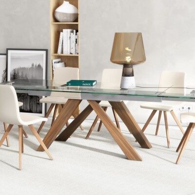Jídelní stůl Fascination se svým jedinečným designem přizpůsobí každému interiéru. Není totiž obyčejným rozkládacím stolem, neboť se rozkládá do délky.