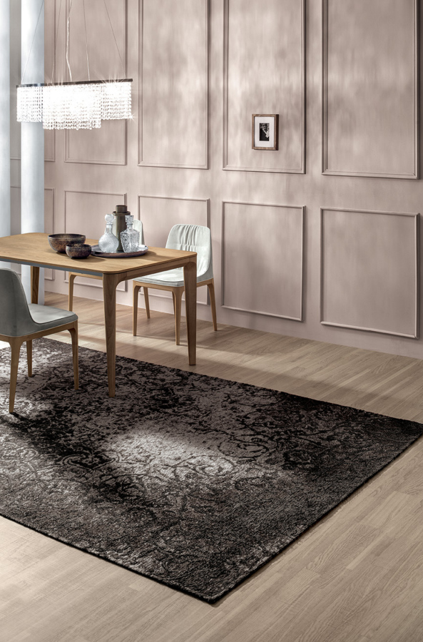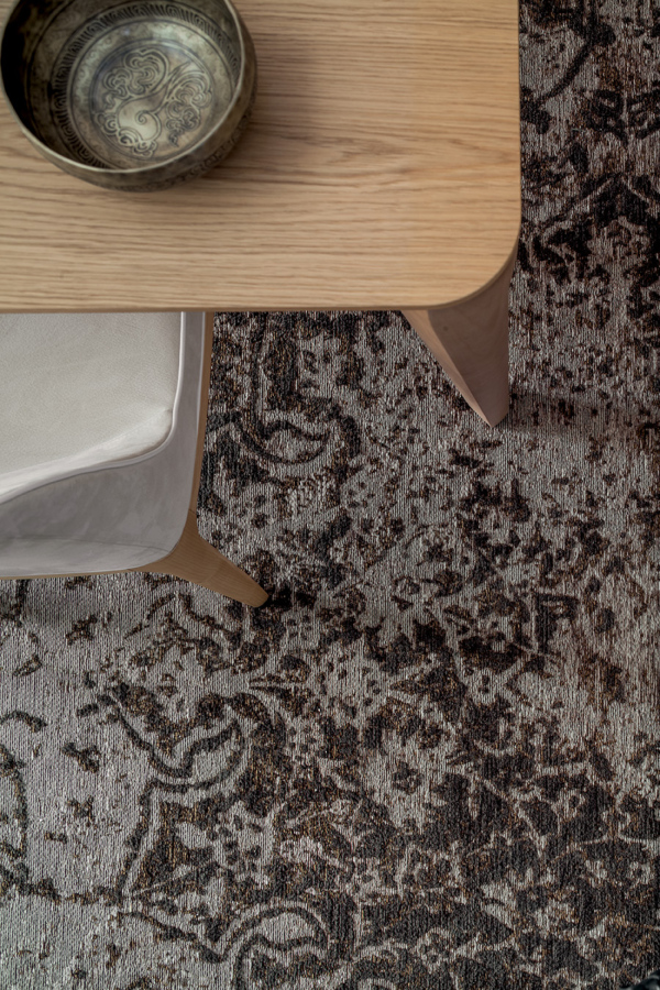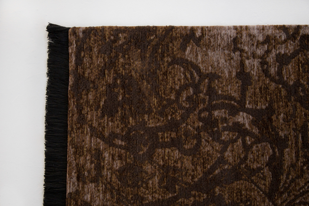 Strojově tkaný oberec s třásněmi a lehce ošoupaným moderním vzhledem.