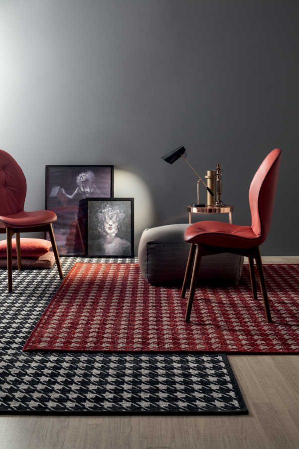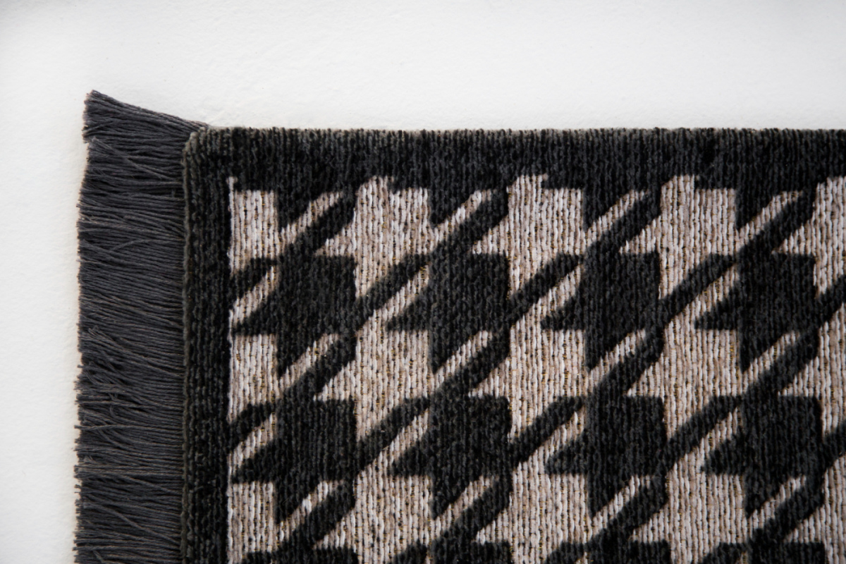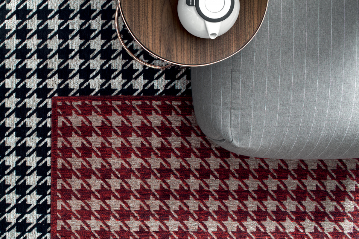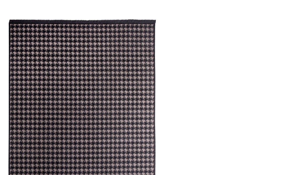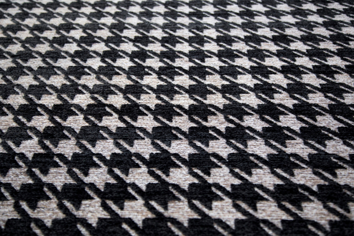Strojově tkaný hebký koberec Farfa se vzorem kohoutí stopy.