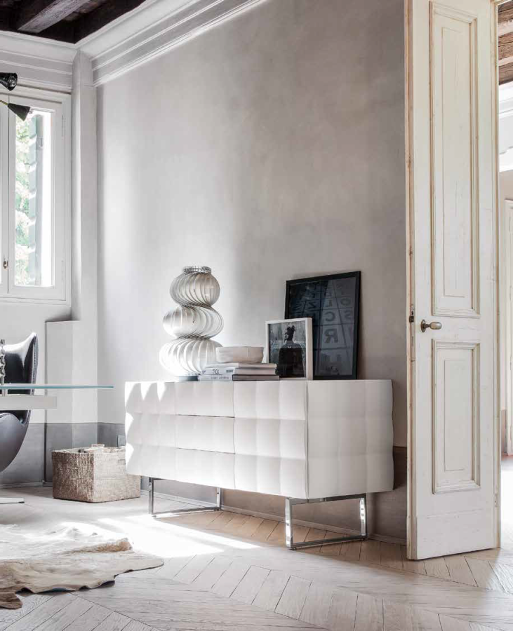 Benátky inspirovaly designéry ze Studia 28 k speciální technice, která na MDF laserovým opracováním vytváří efekt „Capitonné“ – jakoby prošívání. Tento efekt dodává pevné struktuře vzhled měkkého polštáře. Kolekce je vhodná například ke zjemnění příliš hranatých tvarů v interiéru.