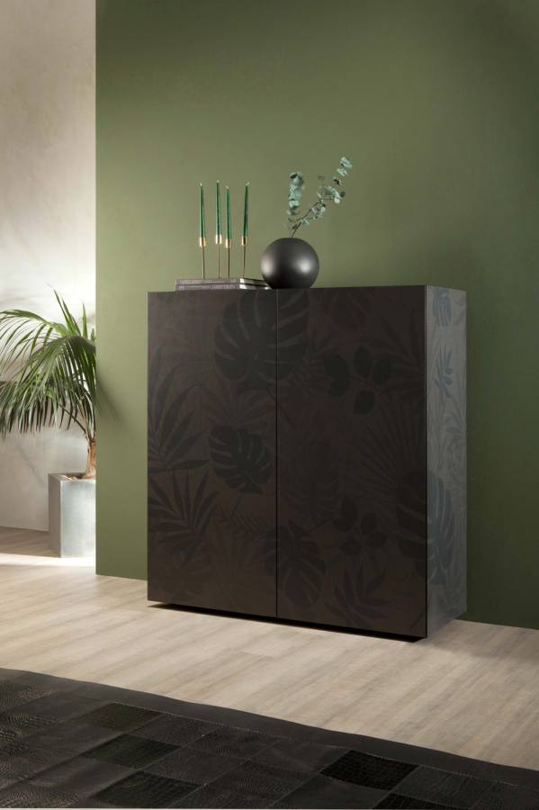Kolekce Kong je jednoduchá, ale efektivní. Její potisk, tropické listy na dvířkách a bocích jsou vedeny v tmavých elegantních tónech, které můžeme zkombinovat s mnoha prvky našeho interiéru.