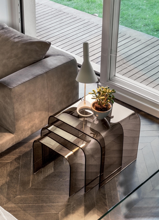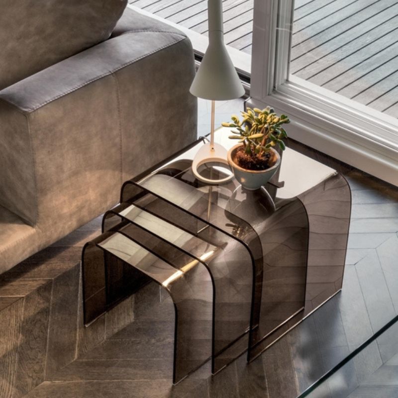 Pomocí konferenčních a přídavných stolů Anemone propojíte perfektně doplňky v celém interiéru. Jednoduchý vzhled stolků ze zaobleného skla nepůsobí v prostoru mohutně, ale spíše odlehčeným dojmem. Produkt patentován výrobcem.