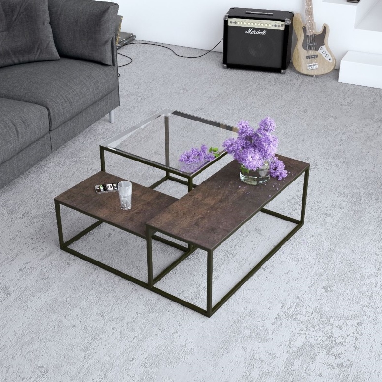 Konferenční stolek Brasilia je velice elegantním doplňkem do obývacího pokoje. Jeho rám je z černě lakované oceli a má tři různé výškové úrovně. Na prvních dvou je na tvrzené sklo přilepena ocelová, písková nebo titanová keramická deska. Nejvyšší desku si můžete vybrat podle vašich preferencí nebo podle doplňků ve vašem interiéru.