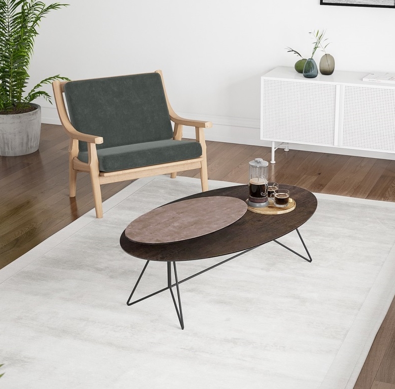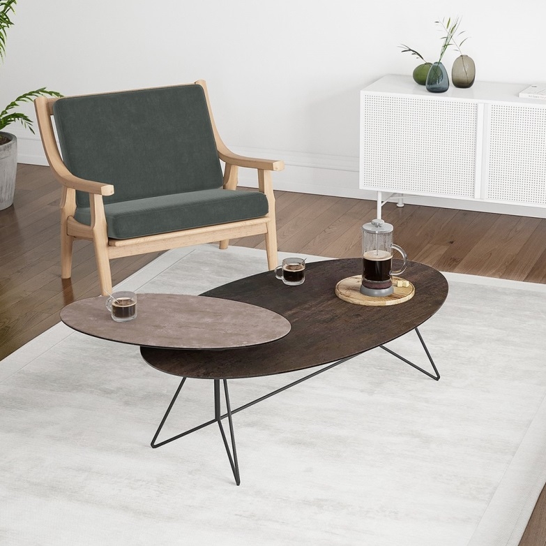 Oválný stůl Ogive dodá každému obývacímu pokoji lehkost, eleganci, jemnost, ale zároveň špetku originality a jedinečnosti. Čiší z něj nádech estetiky a minimalistického kouzla. Stůl disponuje designovou podnoží a keramickou vrchní deskou.