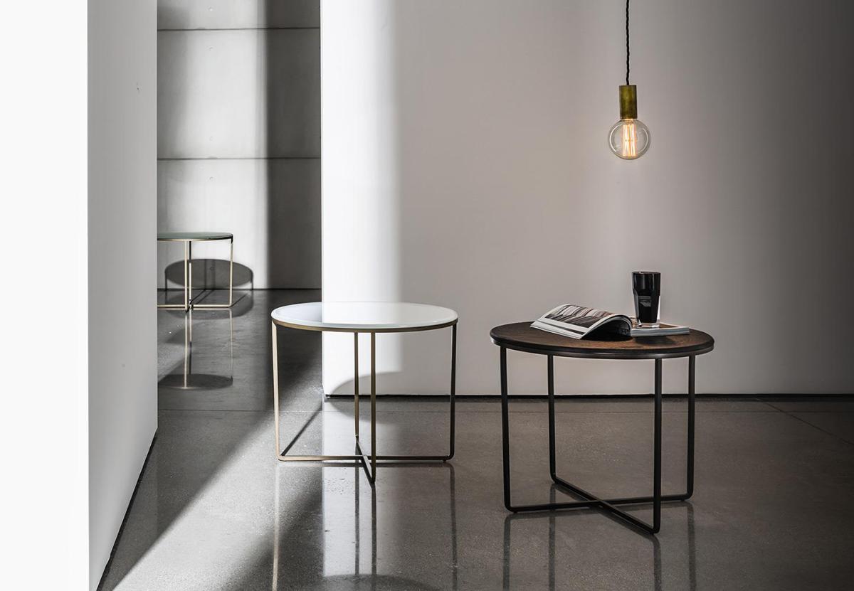 Kulatý konferenční stůl Piktor disponuje elegantním kovovým rámem a vrchní deskou v mnoha typech provedení. Pomocí něho vytvoříte v interiéru minimalistický prostor u Vaší sedací soupravy.
