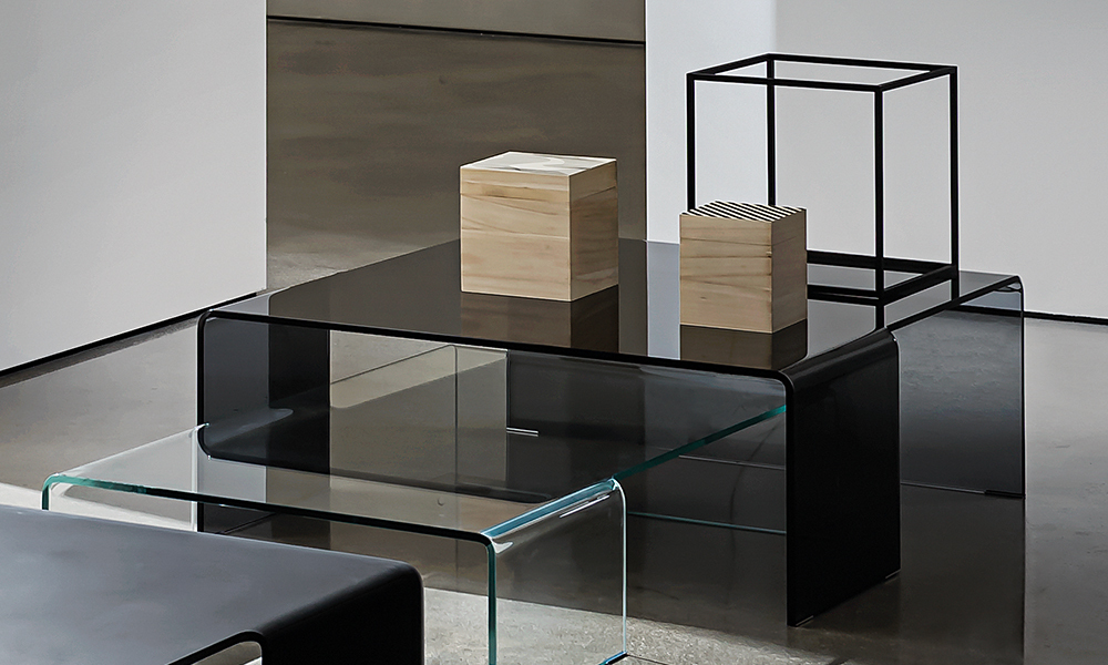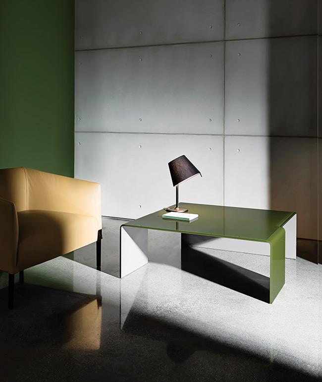 Jednoduchý, ale přesto rafinovaný skleněný konferenční stůl Spider nám dává krásný příklad toho, že design nábytku nezná hranice. Vrchní deska a tři nohy jsou ze zaobleného skla mnoha barev.