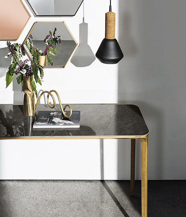 Jednoduchá a elegantní konzole Slim může být díky mnoha variantám materiálů absolutně minimalistická či naprostým unikátním solitérem. Konzole je ze stejné kolekce jako jídelní stůl Slim a konferenční a přídavné stoly Slim.