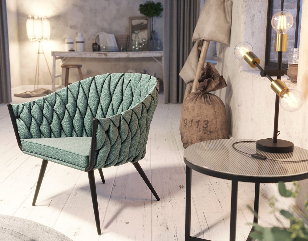 Ručně vyplétané křeslo Neptune je na první pohled celkem nenápadné. Překvapí Vás ale po usazení, jelikož disponuje dokonale komfortním a měkkým sedákem a příjemné posezení u odpolední kávy nebo knihy je zaručeno. Proto tak patří k jednomu z nejprodávanějších křesel z naší nabídky. Kombinace vysoce kvalitního textilu několika barevných odstínů a černé kovové konstrukce navíc vypadá v prostoru odlehčeně a velice moderně.