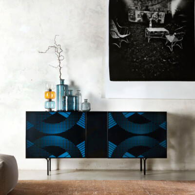 TV komoda Modena s velkou zásuvkou pro ukládání nezbytností je k dispozici v lesklém lakovaném skle.
