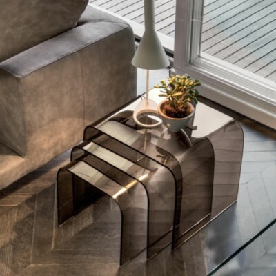 Pomocí konferenčních a přídavných stolů Anemone propojíte perfektně doplňky v celém interiéru. Jednoduchý vzhled stolků ze zaobleného skla nepůsobí v prostoru mohutně, ale spíše odlehčeným dojmem.
