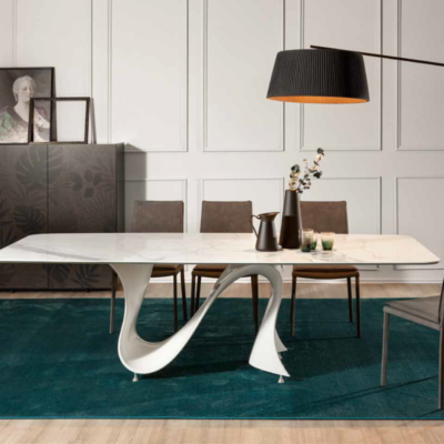 Jedinečný a ohromující jídelní stůl Impulsion se barevně přizpůsobí každému interiéru. Stůl disponuje dvěma rozklady po jednom kusu na každé straně. Rozložení stolu je velice snadné. Z velkého 10-místného stolu získáte během 3 vteřin a pomocí jedné ruky ještě o něco větší jídelní stůl až pro 12 hostů.