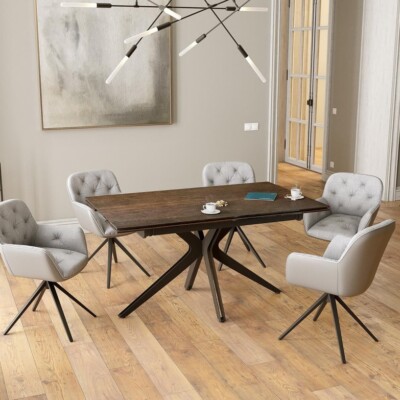 Jídelní stůl Phoenix má jedinečný rozkládací mechanismus. Pouhým posunutím horní desky se stůl uprostřed rozšíří o 60 cm. Dominantní podnož je vyrobena z černé lakované oceli a zajistí dokonalou stabilitu stolu.
