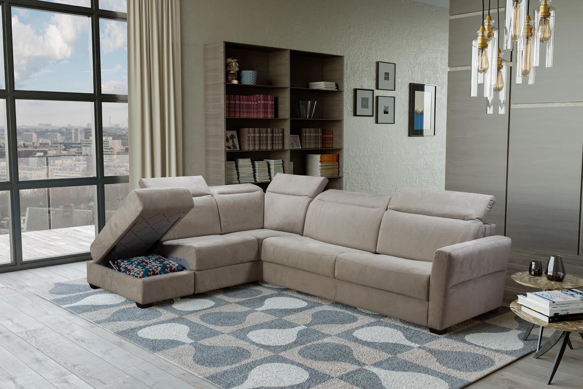 Designová sedací souprava Suite vypadá nádherně v každém interiéru. Prošívání na bočnicích a oblé tvary jsou nádhernými detaily. Její velkou výhodou je možnost rozkladu s plnohodnotným lůžkem a komfortní matrací. Praktickým doplňkem je také úložný box v lehátku.