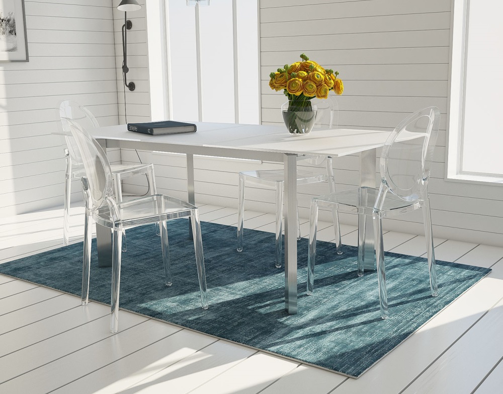 Odlehčená židle Lafayette je v minimalistickém designu. Jedinečný průhledný materiál je nenápadný, a proto se tyto židle hodí do každé domácnosti.