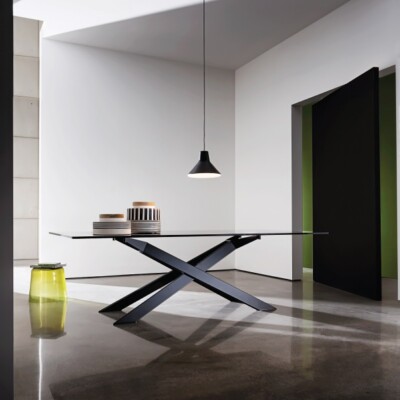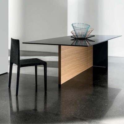 Aikido je jídelní stůl půvabného designu, který se díky svým prestižním materiálům stává protagonistou denního života v jakémkoli prostoru.